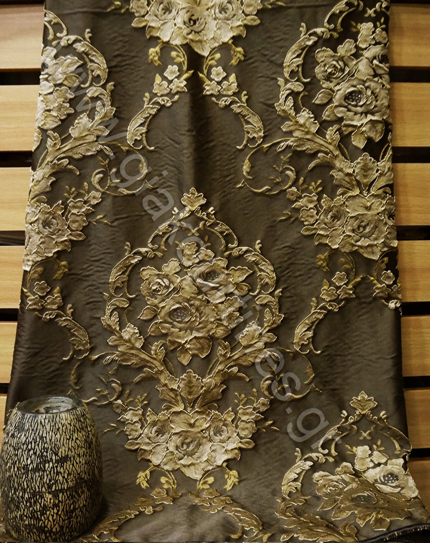 ΥΦΑΣΜΑ ΣΑΤΙΝΕ ΤΑΦΤΑΣ ΜΠΑΡΟΚ ΒΑΡΥΣ ΑΝΑΓΛΥΦΟΣ ΠΟΛΥΤΕΛΕΙΑΣ ΜΕ ΣΤΡΑΣ, ΧΡΩΜΑ ΣΚΟΥΡΟ ΚΑΦΕ ΜΕ ΧΡΥΣΟΛΑΔΙ ΜΟΤΙΒΑ