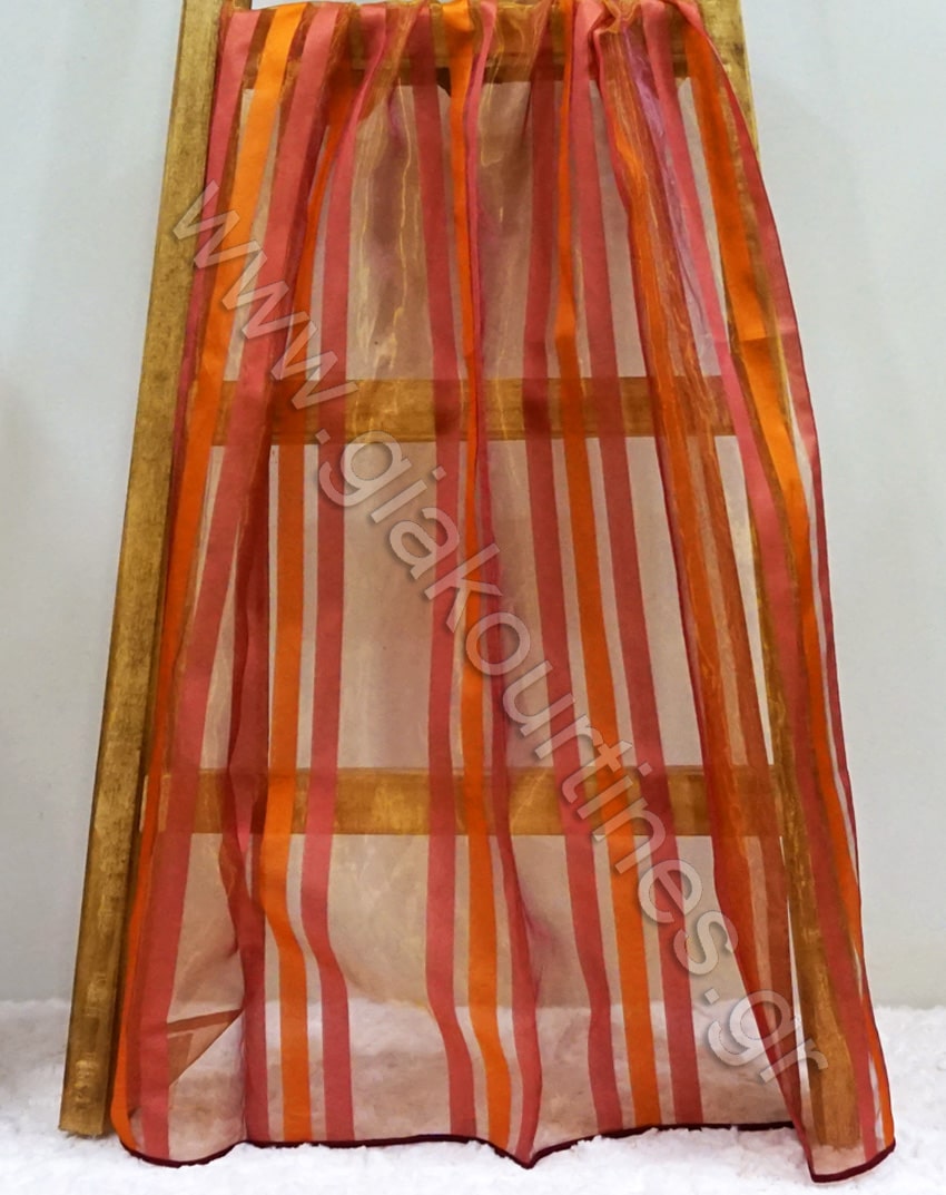 Ύφασμα οργάντζα διάφανη ιριζέ με ρίγες πορτοκαλί σκούρο και φουξ σκούρο