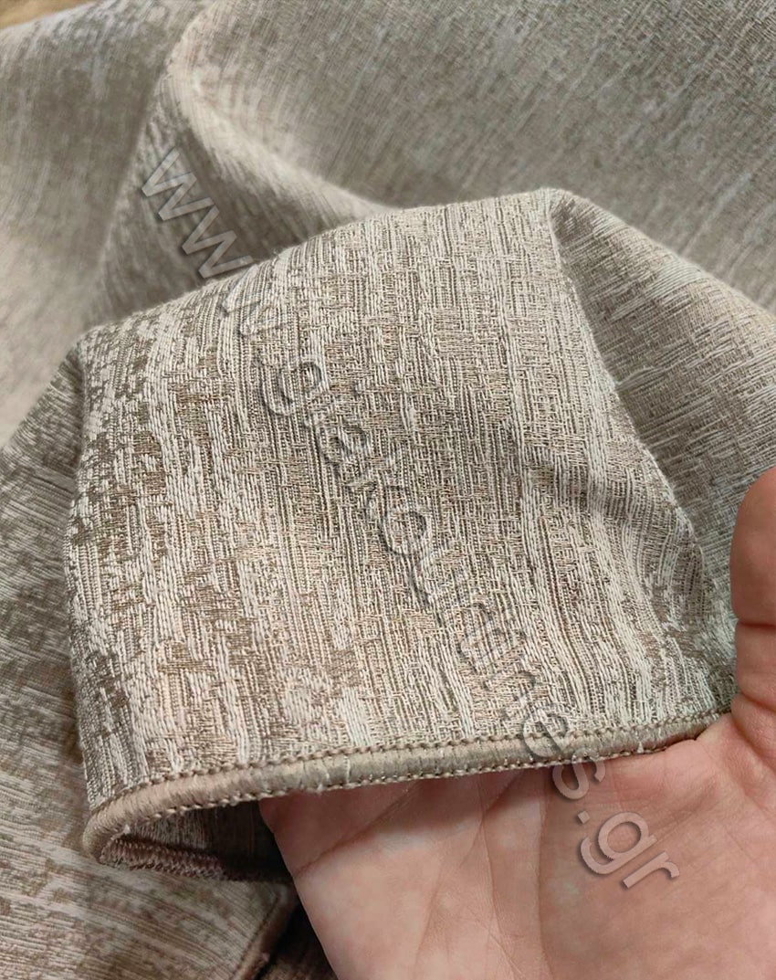 Ύφασμα βαρύ, αδιάφανο, ματ , χυτό ύφασμα. Το χρώμα του είναι του πάγου, προς μπεζ.