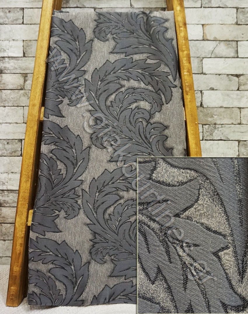 Ύφασμα για κουρτίνα, ζακάρ, εξαιρετικής ποιότητας, Ευρωπαϊκών προδιαγραφών. Το χρώμα του υφάσματος είναι γκρι με ανάγλυφη μπλε κλωστής φλος. Νέες τάσεις χρωμάτων. Ιδανικό για χώρους με υψηλή αισθητική, για ένα κομψό και επιβλητικό αποτέλεσμα.Μπορεί να χρησιμοποιηθεί μόνη της, ως κουρτίνα σκίασης ή σε συνδυασμό με κάποια πιο λεπτή, ως ριντό ή ως ρόμαν πακέτο.
