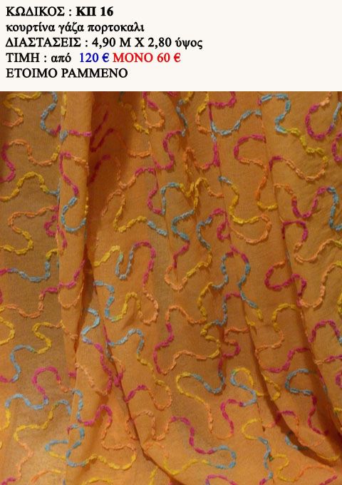 ΚΟΥΡΤΙΝΑ ΓΑΖΑ ΠΟΡΤΟΚΑΛΙ, ΣΧΕΔΙΑ ΓΑΛΑΖΙΟ, ΚΙΤΡΙΝΟ, ΦΟΥΞ