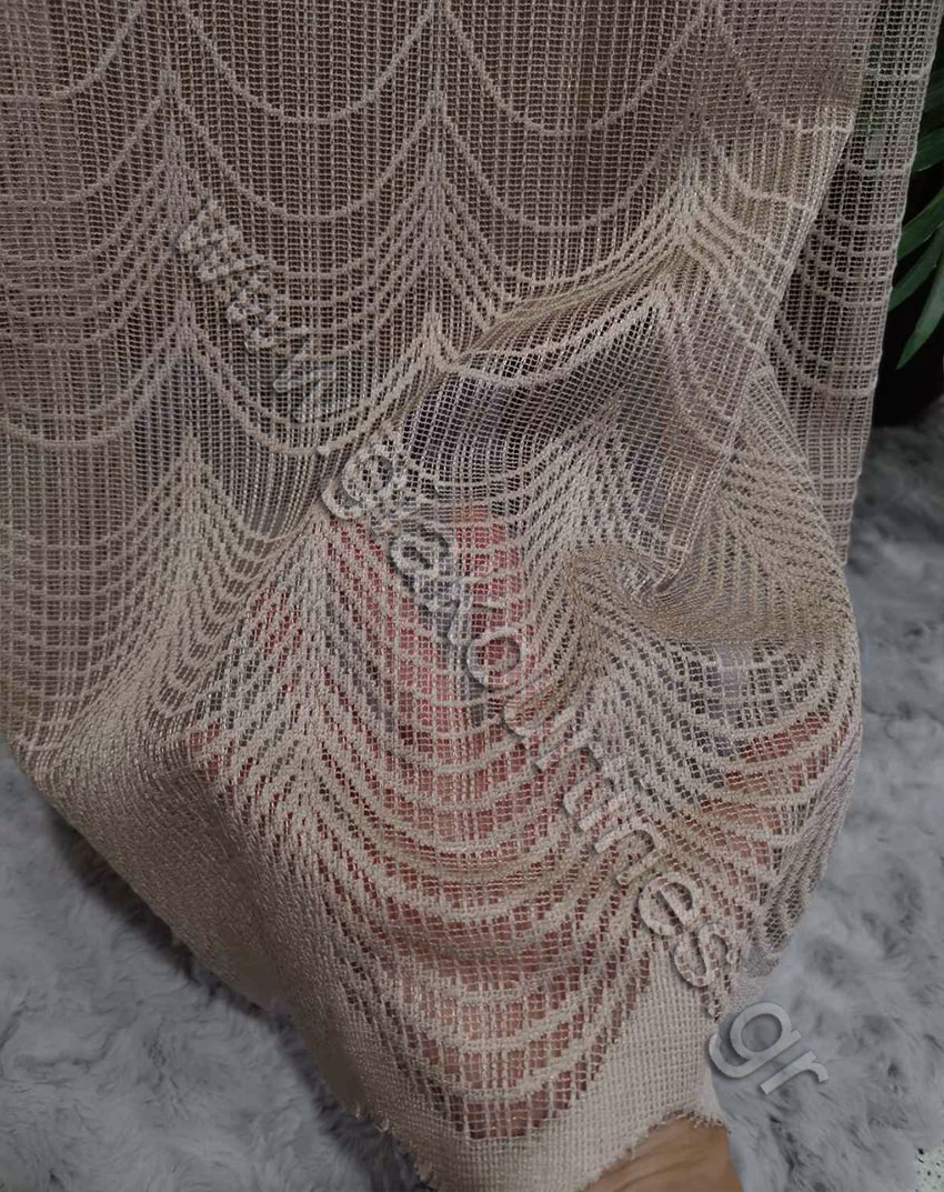 Ύφασμα για κουρτίνα , με διαφάνεια, Ευρωπαϊκών προδιαγραφών. Δαντέλα σταθερή με φιστόνι στο τελείωμα. Εξαιρετικά χυτό και σταθερό ύφασμα. Το χρώμα της κουρτίνας είναι σκούρο μπεζ. Ατσαλάκωτο ύφασμα, δεν χρειάζεται καθόλου σίδερο.