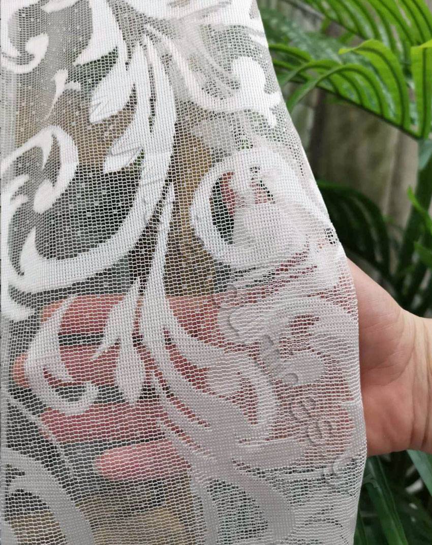 Ύφασμα για κουρτίνα, δαντέλα, με διαφάνεια, Ευρωπαϊκών προδιαγραφών. Δαντέλα, σταθερή κουρτίνα, με φιστόνι στο τελείωμα. Ατσαλάκωτο, χυτό και σταθερό ύφασμα. Το χρώμα της κουρτίνας είναι υπόλευκο. Ατσαλάκωτο ύφασμα, δεν χρειάζεται καθόλου σίδερο.