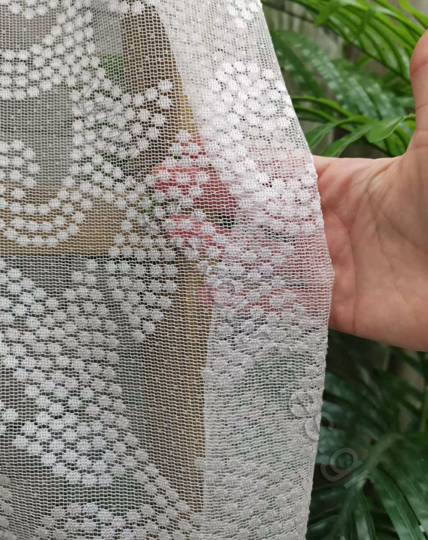 Ύφασμα για κουρτίνα με το μέτρο, δαντέλα, με διαφάνεια, Ευρωπαϊκών προδιαγραφών. Δαντέλα, σταθερή κουρτίνα, ανάλαφρη, με φιστόνι στο τελείωμα. Ατσαλάκωτο, χυτό και σταθερό ύφασμα. Το χρώμα της κουρτίνας είναι υπόλευκο. Ατσαλάκωτο ύφασμα, δεν χρειάζεται καθόλου σίδερο.