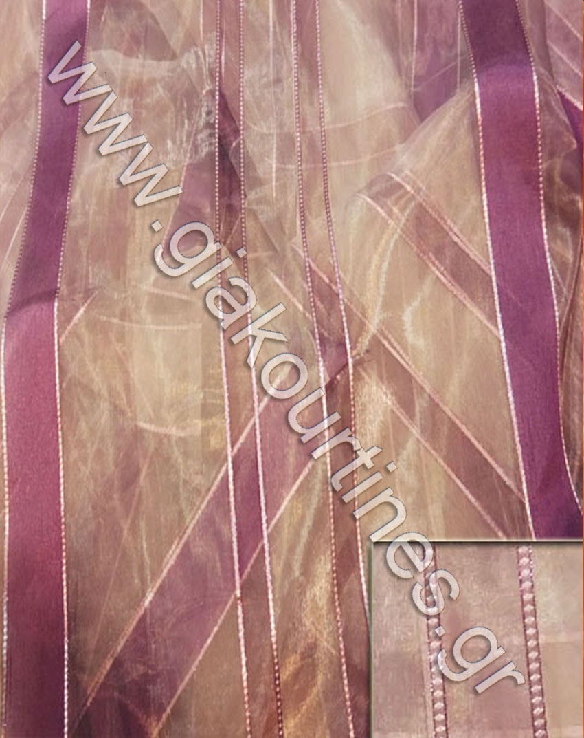 Κουρτίνα οργάντζα διάφανη με ρίγα μωβ λιλά