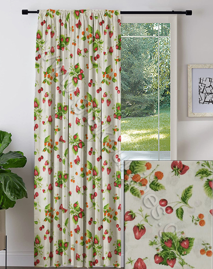 Κουρτίνα αδιάφανη έτοιμη ραμμένη. Λονέτα Ισπανίας, χρώμα εκρού με φραουλίτσες και κερασάκια