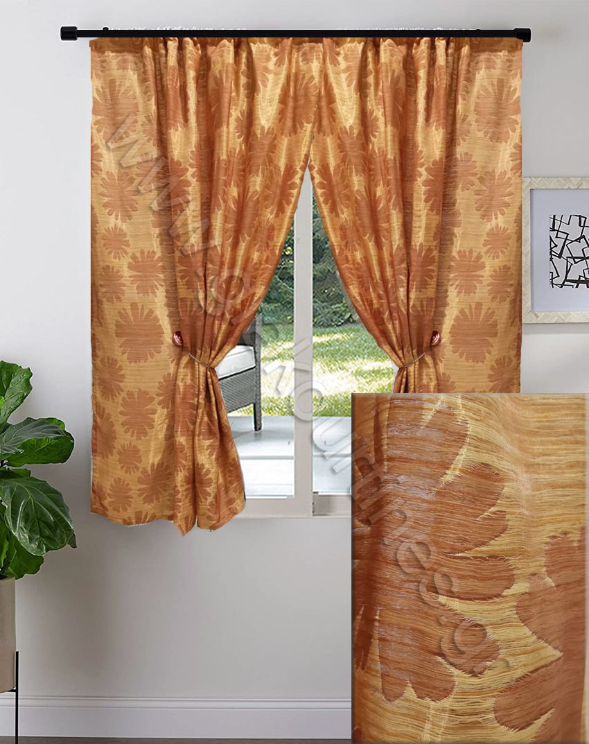 Κουρτινάκια για παράθυρο, έτοιμα ραμμένα. Αποτελείται από 2 τεμάχια. Κουρτίνα σκίασης, διπλοϋφαμένη πυκνή οργάντζα. Το χρώμα της κουρτίνας είναι απαλό κεραμιδί με κεραμιδί λουλούδια. Ράβονται στο εργαστήριο μας με ελληνική ποιοτική τρέσα. Οι διαστάσεις μπορούν να τροποποιηθούν. Συνδυάστε με κουρτίνα μπαλκονόπορτας ΚΕΡ113 ή υπόλευκη κουρτίνα διάφανη.