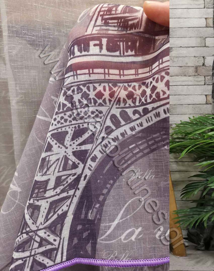 Ύφασμα για κουρτίνα, ημιδιάφανη, Ευρωπαϊκών προδιαγραφών. Ατσαλάκωτη γάζα σταθερή, ombre σε αποχρώσεις του λευκού και μωβ. Το μοτίβο της κουρτίνας φτάνει τo 1 μέτρo και συνεχίζει με μονόχρωμο λευκό στο πάνω μέρος. Διαθέτει ενσωματομένο βαρίδι στο τελείωμα για σωστό λούκι και στήσιμο της κουρτίνας.