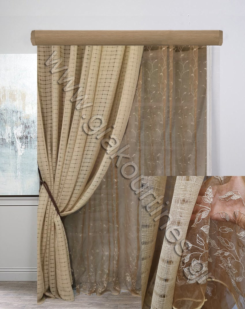Το ριντό είναι ραμμένο με τρέσα σχέδιο vanity 10 εκατοστών και η κουρτίνα με συνεχόμενη πιέτα 8 εκατοστών. Οι τρέσσες είναι ελληνικές. Τηλ. επικοινωνίας 6979706348