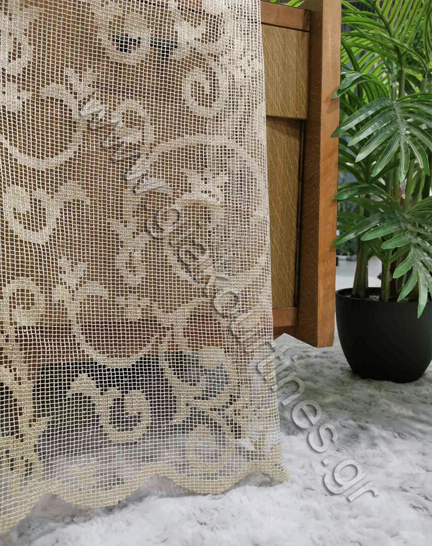 Κουρτίνα ατσαλάκωτη, φιλε, διάφανη, με φιστόνι στο τελείωμα. Το χρώμα της κουρτίνας είναι λευκό με ανοιχτό χρυσαφί.