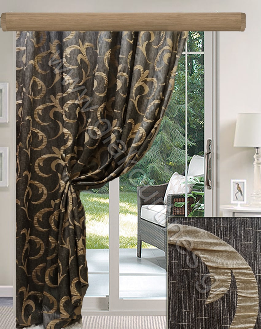 Έτοιμη κουρτίνα ραμμένη, σκίασης. Το χρώμα της κουρτίνας είναι γκρι με μπαρόκ σχέδιο κλαδί χρώμα μπεζ.