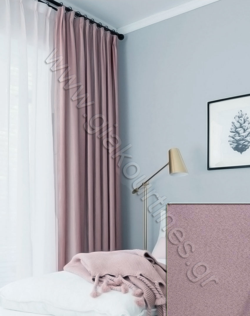 Κουρτίνα βαριά συσκότισης ραμμένη, χρώμα πούδρας. Διαθέσιμες αποχρώσεις του πάγου, εκρού, μπεζ σκούρο και γκρι ποντικί.