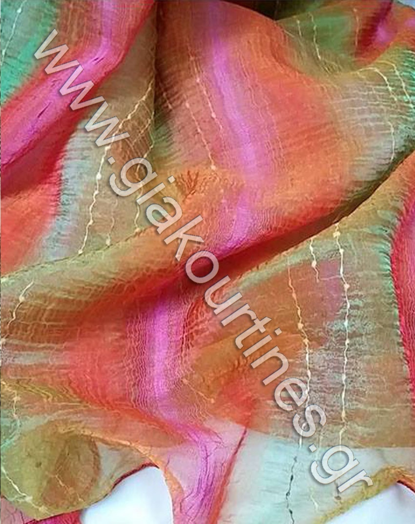 Κουρτίνα διάφανη ατσαλάκωτη οργάντζα, αποχρώσεις φουξ,πράσινο, πορτοκαλί.