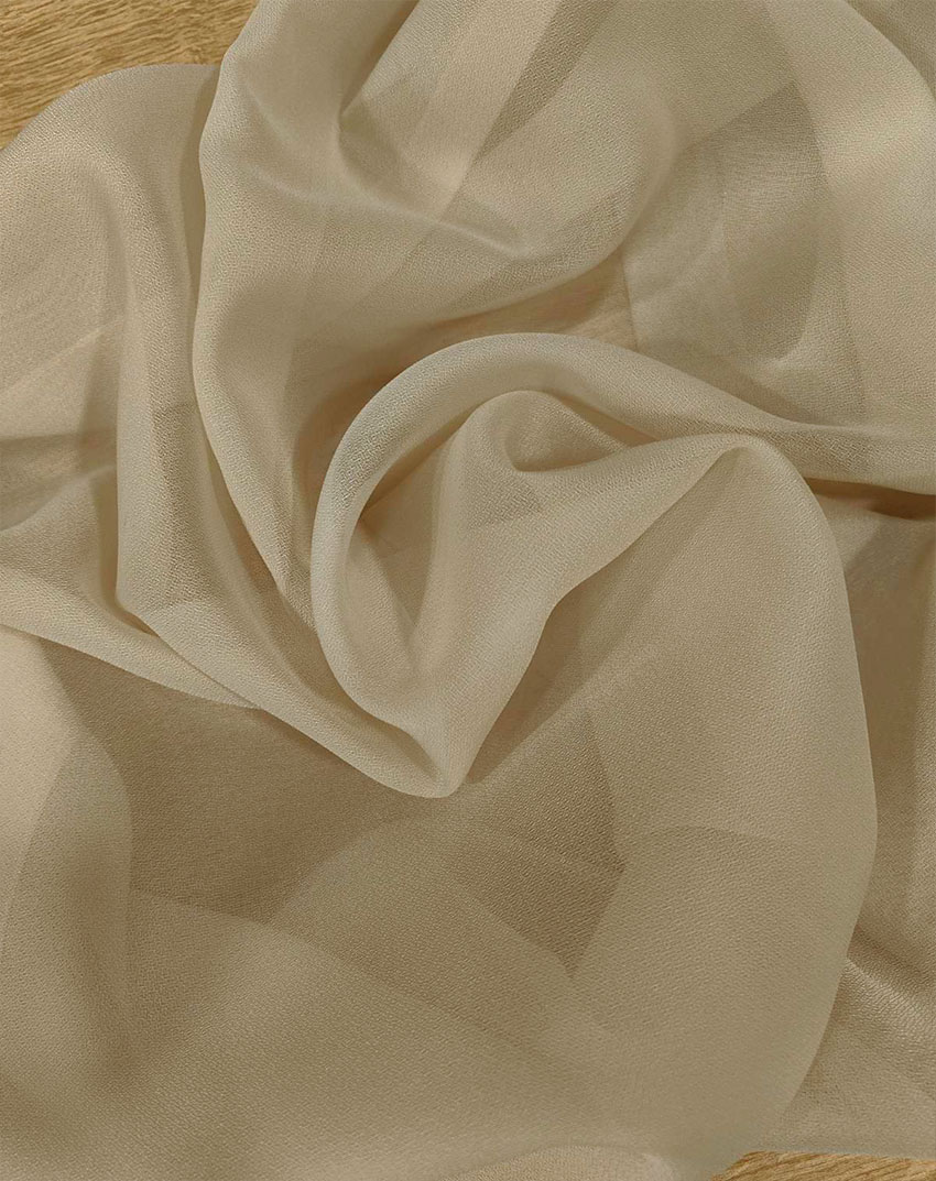 Ύφασμα για κουρτίνα , με διαφάνεια, Ευρωπαϊκών προδιαγραφών. Κουρτίνα χυτή ποιότητα ματ ζορζέτα.Το χρώμα της κουρτίνας είναι ουδέτερο smokey Μπεζ. Διαθέτει βαρίδι στο τελείωμα.