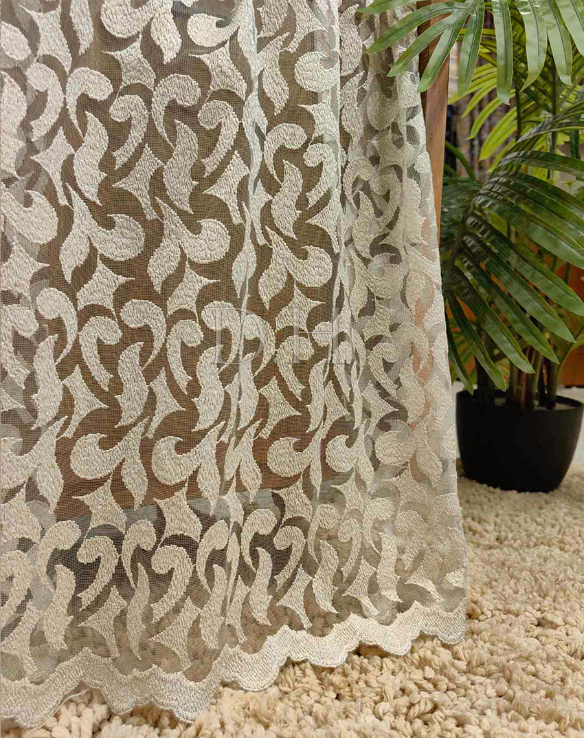 Ύφασμα για κουρτίνα με το μέτρο, με διαφάνεια, Ευρωπαϊκών προδιαγραφών. Πολυτελείας τούλινη οργαντίνα κεντημένη, με εξαιρετικά νήματα, κλωστή glitter και φιστόνι στο τελείωμα. Το χρώμα της κουρτίνας είναι ουδέτερο με κεντημένα χρώμα σαμπανιζέ. Ατσαλάκωτο ύφασμα, δεν χρειάζεται καθόλου σίδερο.
