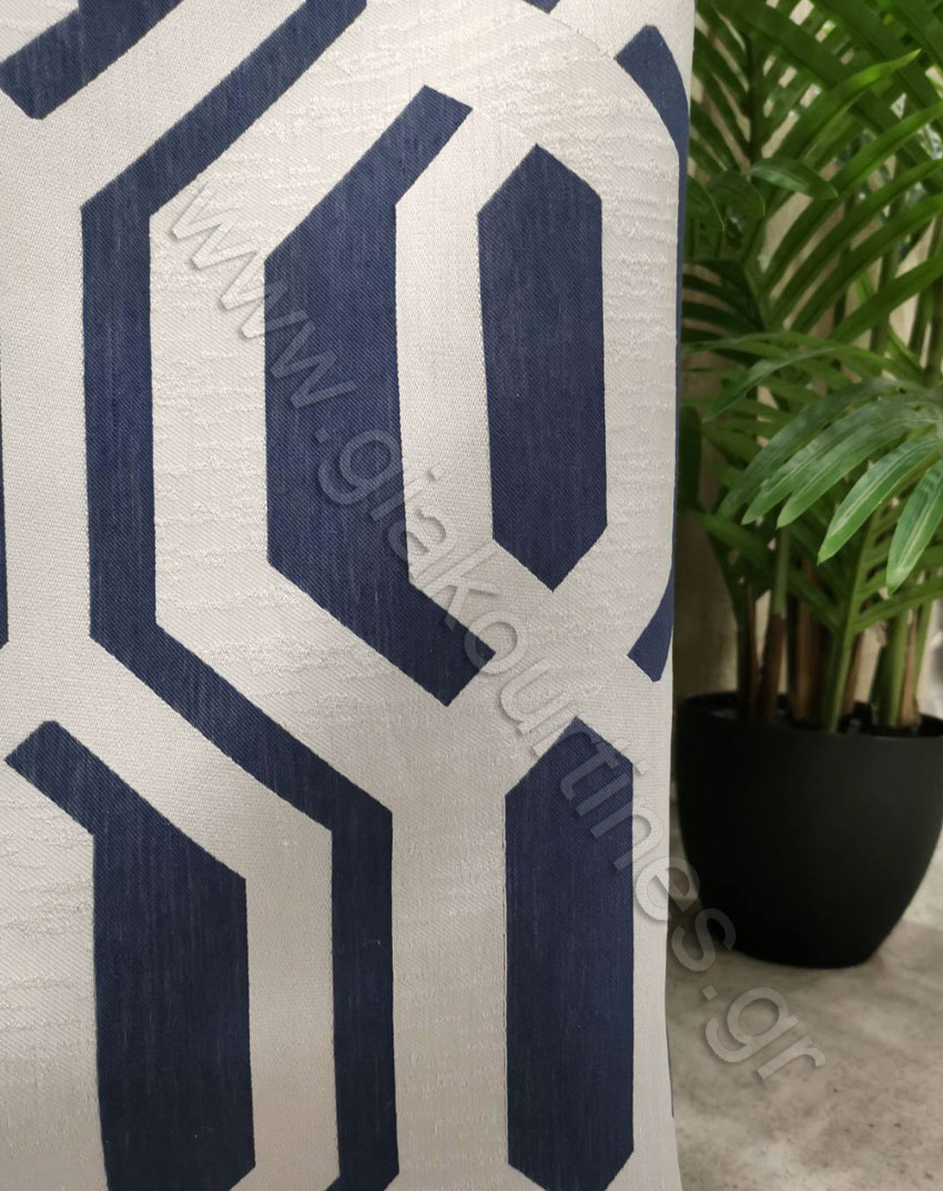 Ύφασμα για κουρτίνα, πολυτελείας, χωρίς διαφάνεια, ύφασμα ζακάρ, Ευρωπαϊκών προτύπων. Χρώμα μπλε με μοντέρνο γεωμετρικό μοτίβο χρώμα του πάγου.