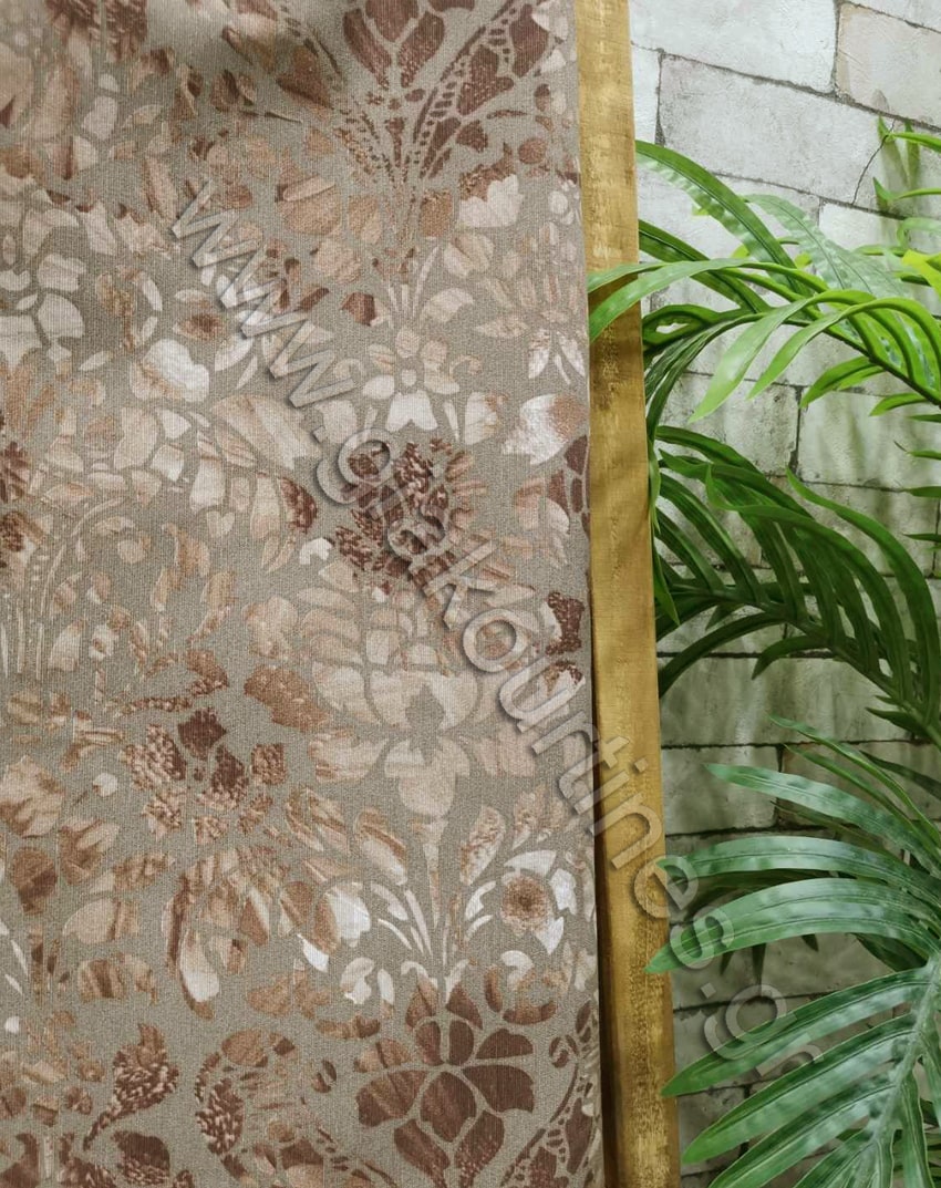 Ύφασμα για κουρτίνα , χωρίς διαφάνεια, λονέτα Ισπανίας άριστης ποιότητας. Η βάση της κουρτίνας είναι απαλό καφέ με μοτίβα floral damask σε αποχρώσεις μπεζ καφέ.