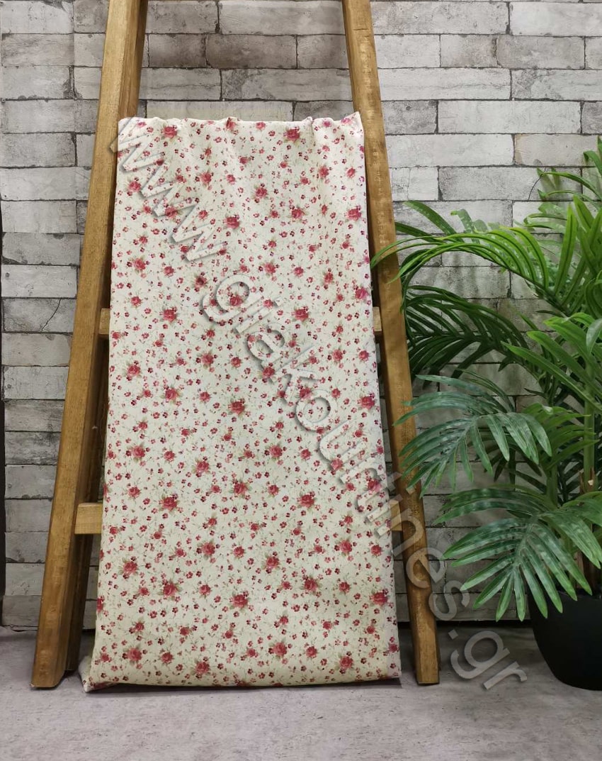 Ύφασμα για κουρτίνα , χωρίς διαφάνεια, λονέτα Ισπανίας άριστης ποιότητας. Floral ύφασμα, η βάση της κουρτίνας είναι ζαχαρί με ψιλά ανθάκια smokey ροζ, γκρενά και φυλλαράκια λαδί .
