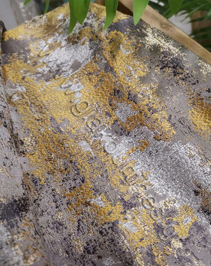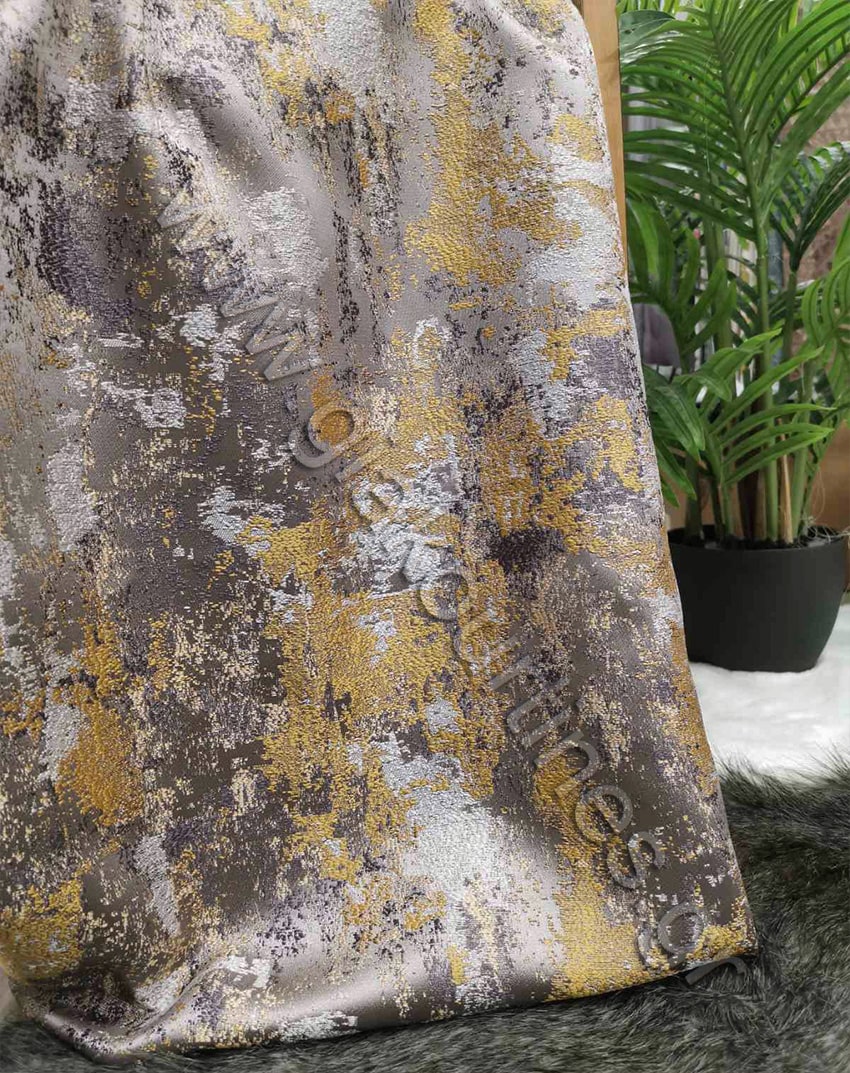 Ύφασμα για κουρτίνα, πολυτελείας, χωρίς διαφάνεια, χυτός ταφτάς, Ευρωπαϊκών προτύπων.Η βάση του είναι γκρι με μοτίβο γκρι και μουσταρδί. Συνδυάστε άψογα ψυχρούς τόνους με θερμούς.