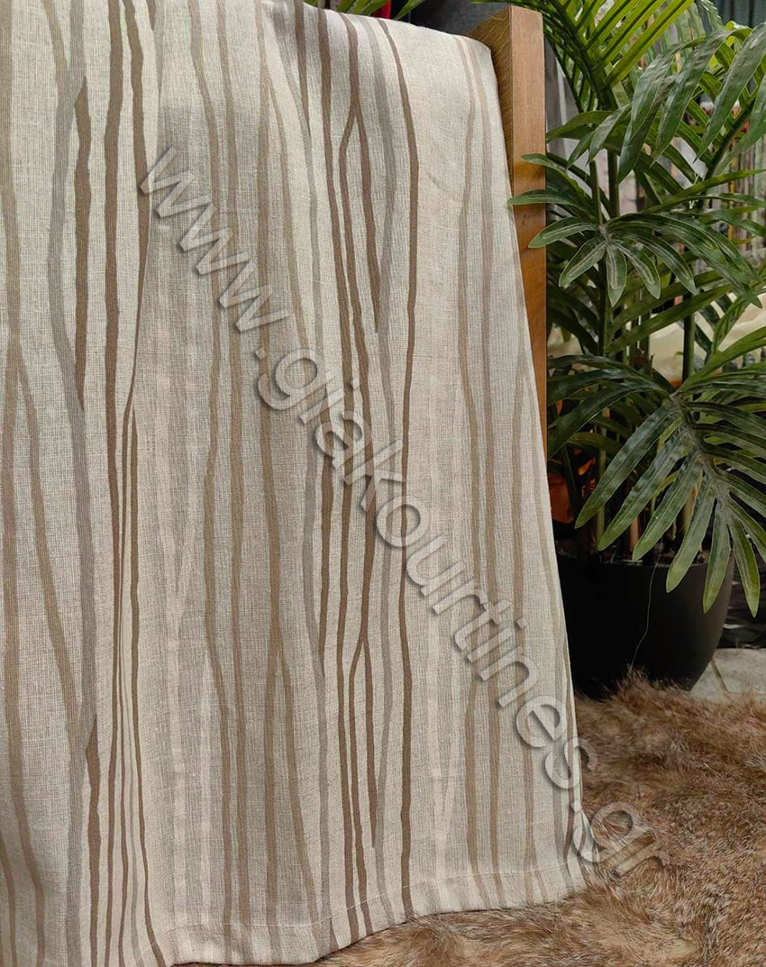 αδιάφανο, λονέτα Ισπανίας εξαιρετικής ποιότητας. Το χρώμα της κουρτίνας είναι ουδέτερο της άμμου με μπεζ, καφέ ουδέτερο και απαλό γκρι ρίγες.