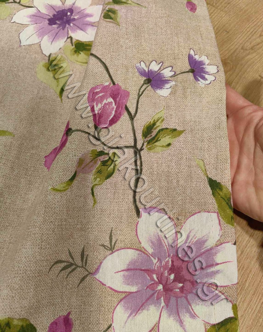 Ύφασμα για κουρτίνα , χωρίς διαφάνεια, λονέτα καραβόπανο Ισπανίας άριστης ποιότητας. Η βάση της κουρτίνας είναι μπεζ με λουλούδια.