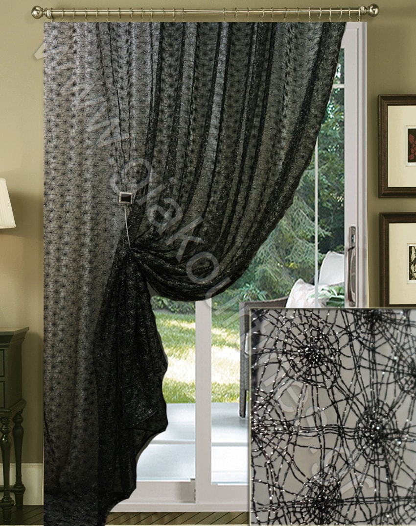 Κουρτίνα ραμμένη διάφανη, δίχτυ αράχνη διάτρητο. Μοντέρνο ύφασμα, χυτό και μαλακό, δεν χρειαζεται σίδερο. Το χρώμα της κουρτίνας είναι μαύρο με ασημί λάμψεις.