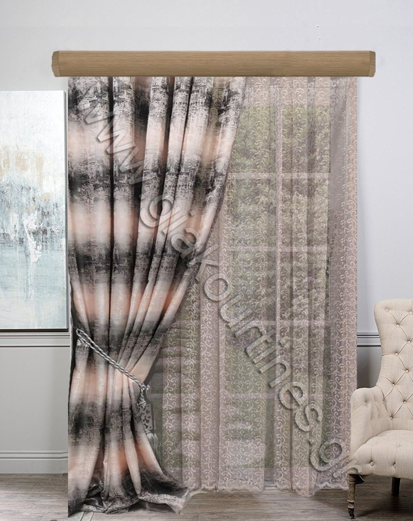 Το ριντό είναι ραμμένο με τρέσα σχέδιο vanity 10 εκατοστών και η κουρτίνα με συνεχόμενη πιέτα 8 εκατοστών. Οι τρέσσες είναι ελληνικές. Αν επιθυμείτε κάποιο άλλο είδος ραφής ή να συνδυάσετε με κάποια διαφορετική εσωτερική κουρτίνα, επικοινωνήστε μαζί μας. Ιδανικό σετ για σαλόνι, καθιστικό καθώς και υπνοδωμάτιο. Οι κουρτίνες μπορούν να ραφτούν σε επιθυμητή διάσταση.