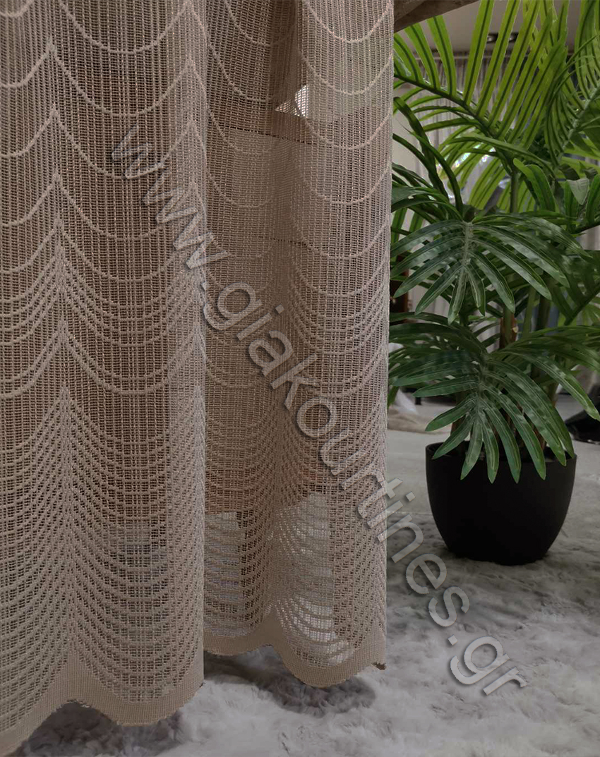 Ύφασμα για κουρτίνα , με διαφάνεια, Ευρωπαϊκών προδιαγραφών. Δαντέλα σταθερή με φιστόνι στο τελείωμα. Εξαιρετικά χυτό και σταθερό ύφασμα. Το χρώμα της κουρτίνας είναι σκούρο μπεζ. Ατσαλάκωτο ύφασμα, δεν χρειάζεται καθόλου σίδερο.