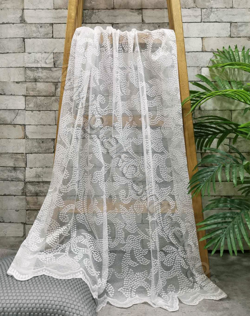 Ύφασμα για κουρτίνα με το μέτρο, δαντέλα, με διαφάνεια, Ευρωπαϊκών προδιαγραφών. Δαντέλα, σταθερή κουρτίνα, ανάλαφρη, με φιστόνι στο τελείωμα. Ατσαλάκωτο, χυτό και σταθερό ύφασμα. Το χρώμα της κουρτίνας είναι υπόλευκο. Ατσαλάκωτο ύφασμα, δεν χρειάζεται καθόλου σίδερο.
