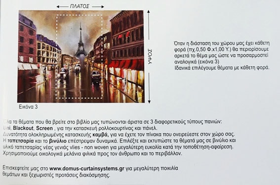 Η τιμή είναι με Φ.Π.Α και αφορά τετραγωνικό μέτρο. Συμπεριλαμβάνει μηχανισμό + ύφασμα + αλυσίδα (χειριστήριο)+ ούπες + βίδες. Ελάχιστη χρέωση 1 τετραγωνικό μέτρο.